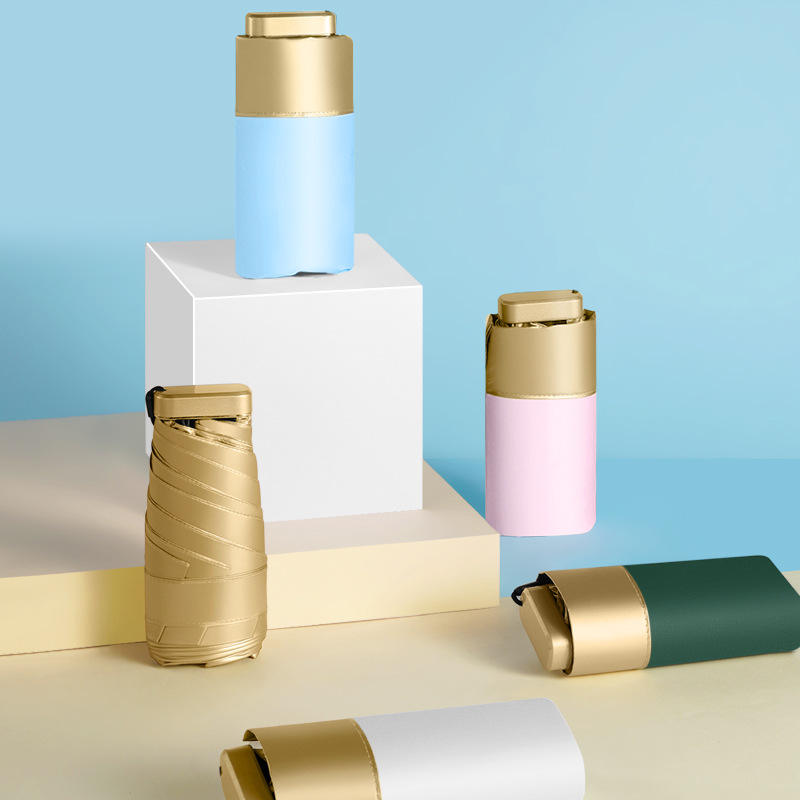 ร่มกันแดดสีทองขนาดเล็ก ร่มพับได้ น้ำหนัก 220 กรัม เปิดปิดด้วยมือ โครงสร้างโลหะผสม เหมาะสำหรับการเดินทาง ใช้ได้ทั้งวันแดดและวันฝนตก พับเก็บได้ขนาดกะทัดรัด