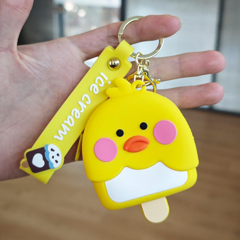 กระเป๋าใส่เหรียญซิลิโคนรูปเป็ดสีเหลืองขนาดเล็กพวงกุญแจตกแต่งของขวัญสำหรับนักเรียนลายการ์ตูนสุดสร้างสรรค์
