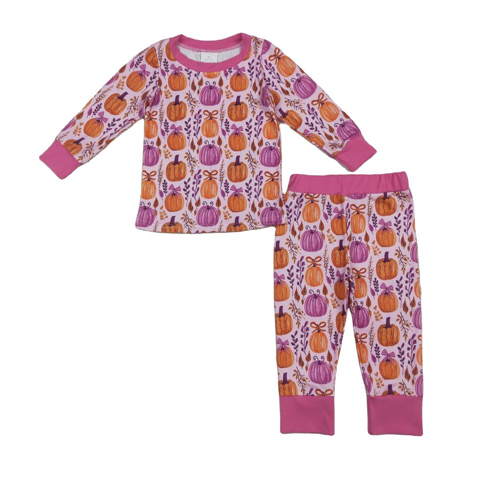 ชุดเสื้อผ้าพิมพ์ลายฟักทองสีส้มสำหรับเด็กผู้หญิงชุดเสื้อผ้าชุดนอนน่ารักแขนยาวสำหรับเด็กวัยหัดเดิน