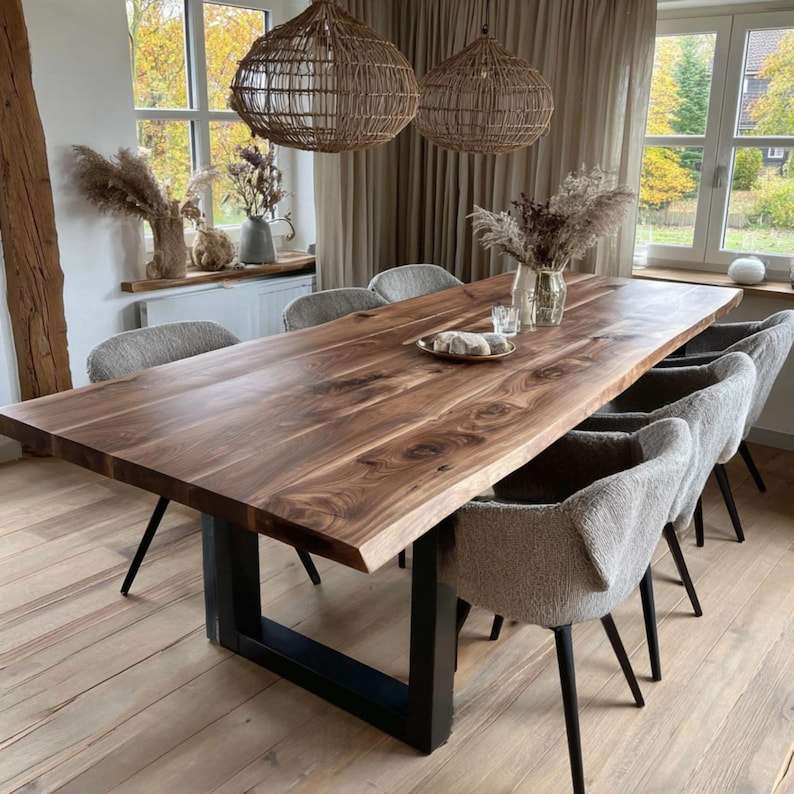 Live EDGE โต๊ะรับประทานอาหารทำจากไม้วอลนัทสี่เหลี่ยมทันสมัยเป็นมิตรกับสิ่งแวดล้อม6ที่นั่งสำหรับห้องครัวหรือห้องรับประทานอาหาร