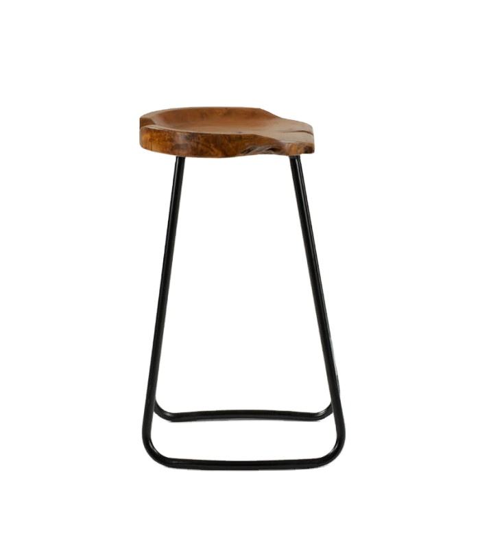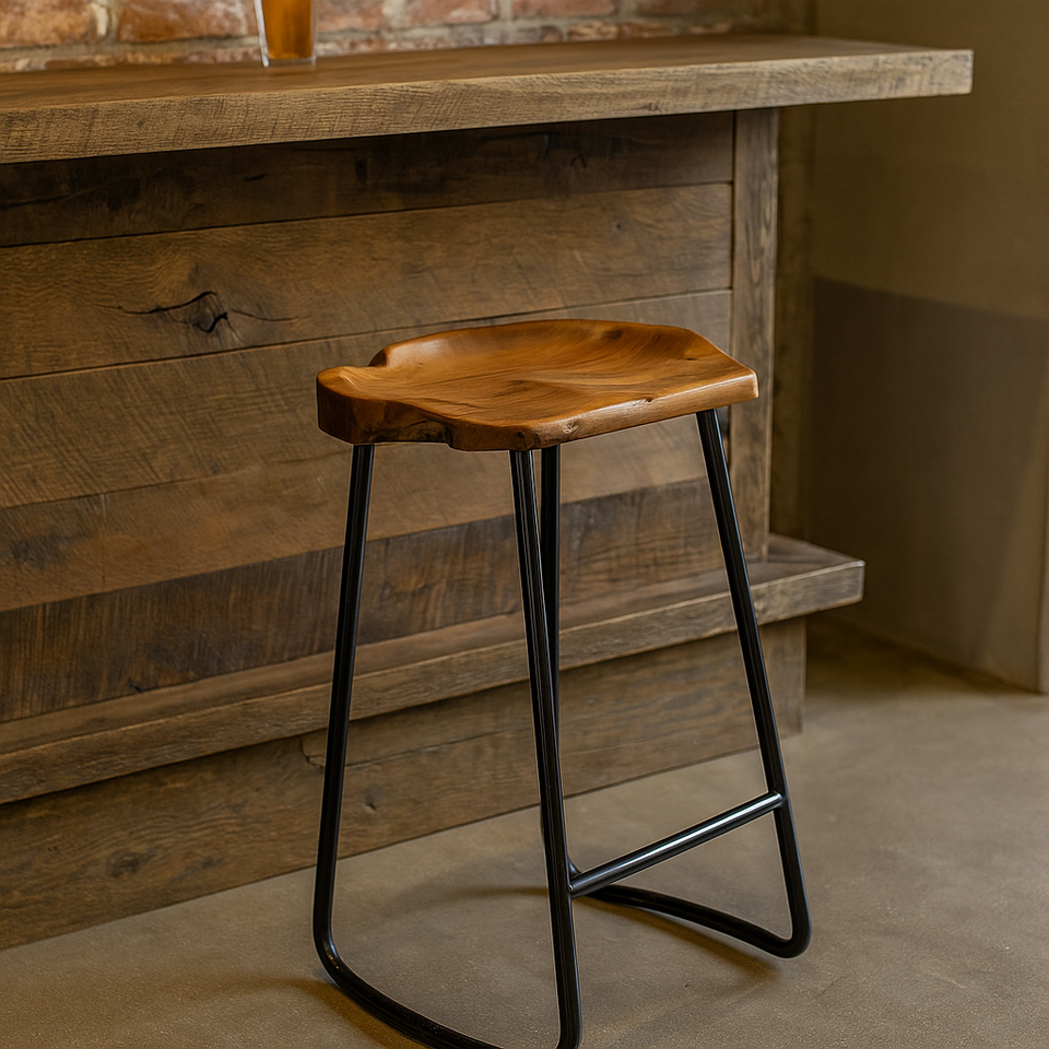 เก้าอี้บาร์ไม้ดีไซน์อุตสาหกรรมที่ทันสมัยมีเอกลักษณ์กรอบเหล็กขอบธรรมชาติที่เป็นเอกลักษณ์สำหรับห้องนั่งเล่นห้องครัวรับประทานอาหารใช้งานกลางแจ้ง