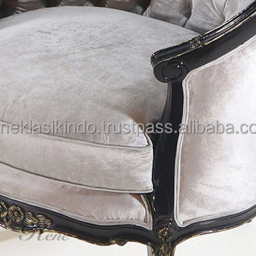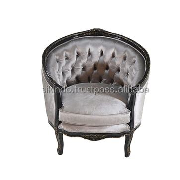 เก้าอี้ห้องนั่งเล่นหมายเลข 5503 ทำจากไม้มะฮอกกานีเก่า พร้อมเบาะโฟมหนาและผ้าเนื้อนุ่ม ตกแต่งอย่างสวยงาม
