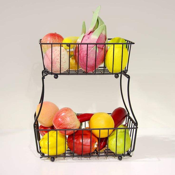 ตะกร้าเก็บผลไม้ในห้องนั่งเล่นพร้อมหูหิ้ว ตะกร้าเก็บอาหารและผักในครัว ชั้นวางโลหะแบบถอดประกอบได้