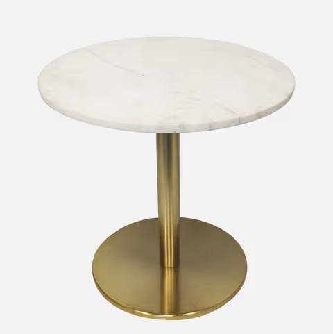 ห้องนั่งเล่นโต๊ะข้างเหล็กสีทองและหินอ่อนสีขาวโต๊ะโค้งมน โต๊ะข้างโซฟาเหล็กเกรดพรีเมี่ยม คุณภาพมาตรฐาน