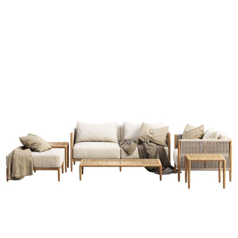 เฟอร์นิเจอร์โซฟาห้องนั่งเล่นพร้อมโครงไม้สัก โฟมหนานุ่ม ผ้าเนื้อนุ่มเรียบเนียน ตกแต่งอย่างประณีต