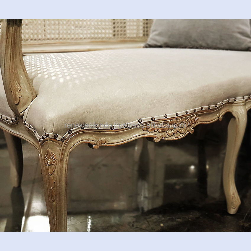 โซฟาเบดแบบปรับเปลี่ยนได้สองที่นั่ง รุ่น 1754 โครงไม้และหวาย พร้อมเบาะโฟมหุ้มผ้าเนื้อนุ่ม