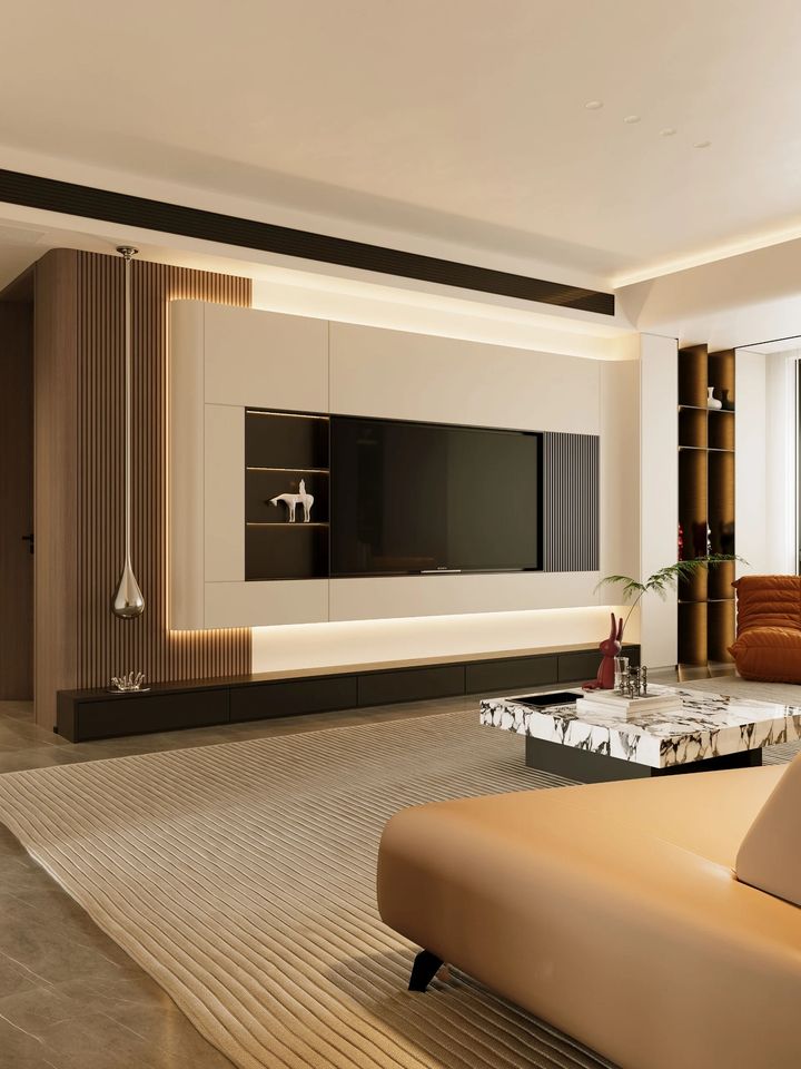 ตู้เก็บของทีวีในห้องนั่งเล่น | บอร์ดสไตล์หรูหราน้ำหนักเบา | ปรับแต่งได้ตามต้องการ