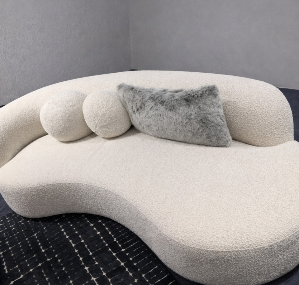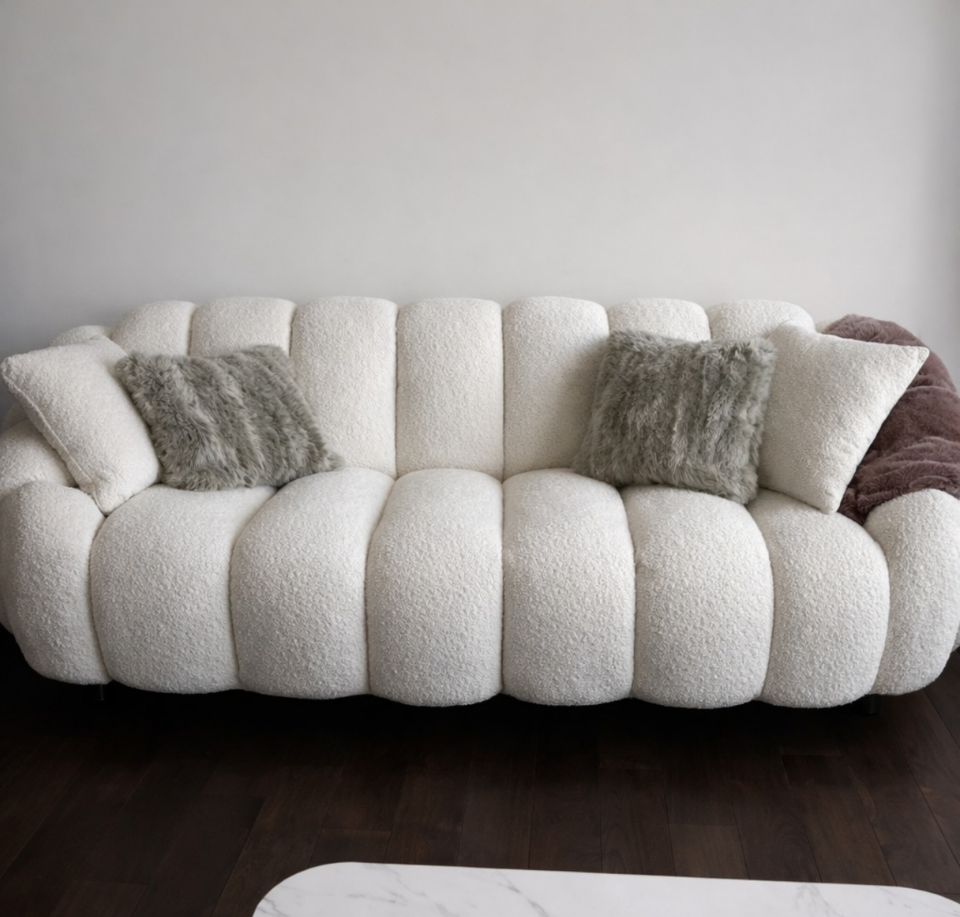 โซฟา 3 ที่นั่ง รุ่นนิว วิชั่น คอนเทมโพรารี่ ลิฟวิ่ง รูม หุ้มกำมะหยี่สีขาว โครงไม้ พร้อมเก้าอี้ยาวแบบเลิฟซีท