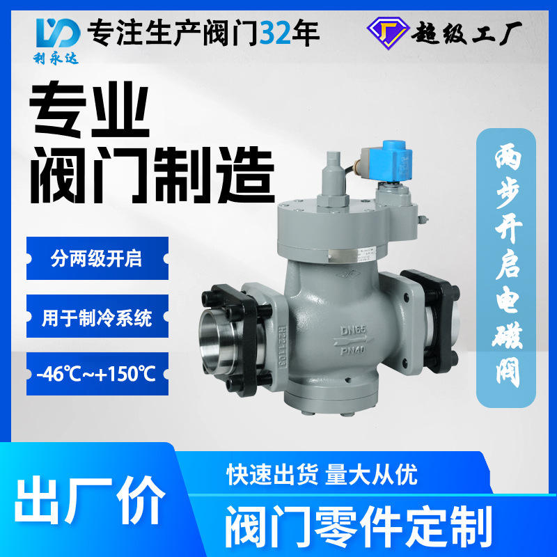 ลิยงดา โซลินอยด์วาล์ว DN65 PN40 แบบเปิดสองขั้นตอน สำหรับควบคุมการไหลของแอมโมเนีย ใช้ในอุตสาหกรรม