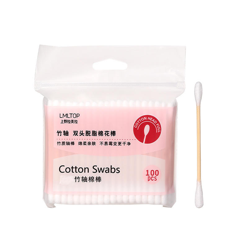Lmltop สำลีก้านไม้ไผ่ 100 ชิ้น ปลายกลม สำหรับเครื่องสำอางบำรุงผิว A650