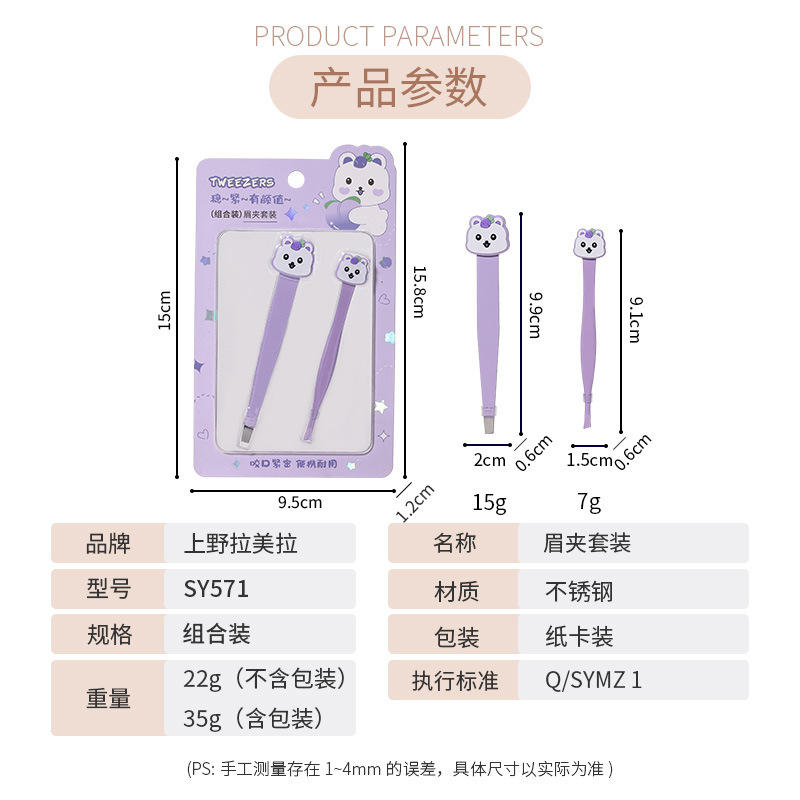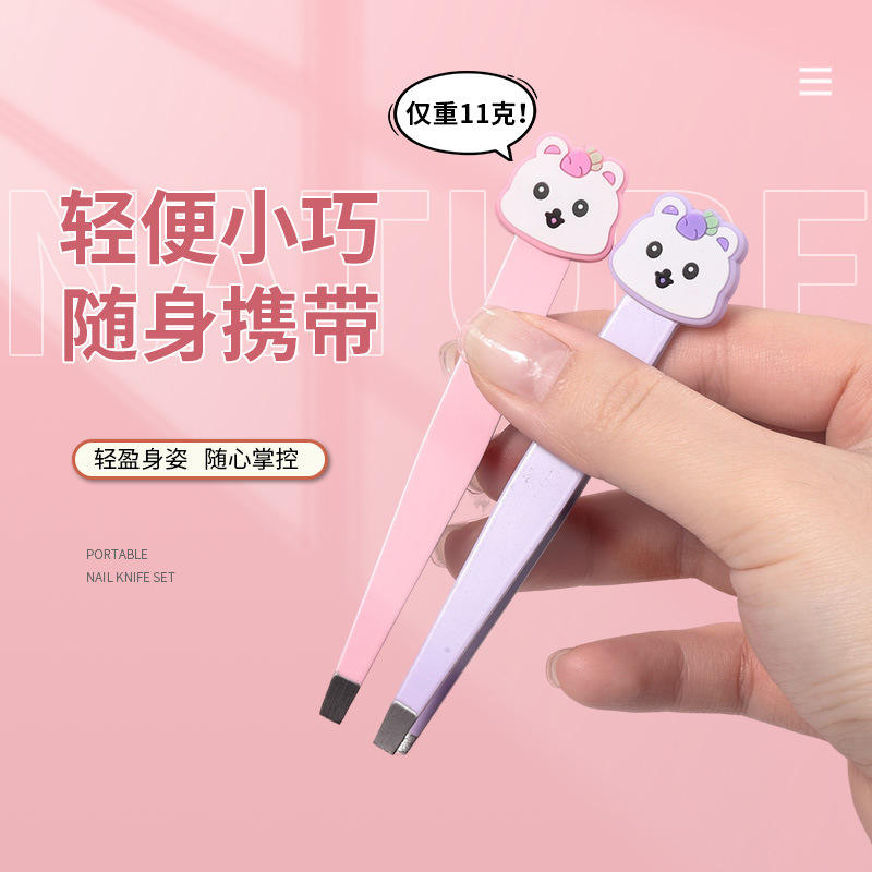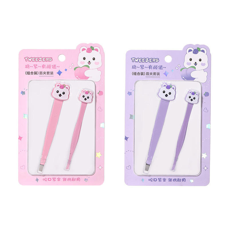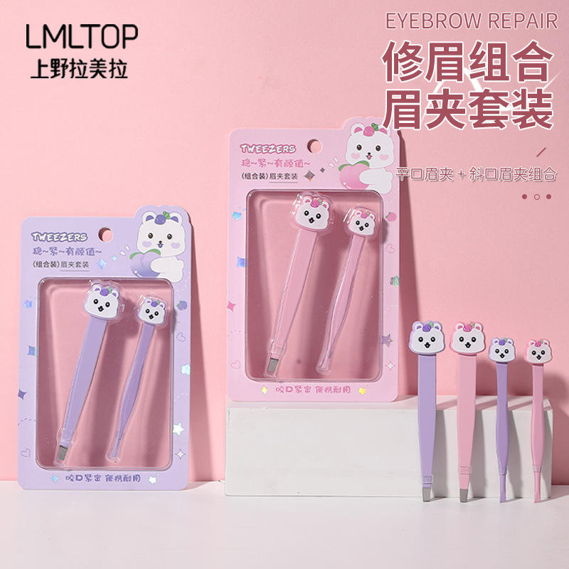 ชุดแหนบถอนคิ้วการ์ตูน lmltop สแตนเลสปลายแบนสำหรับถอนขนคิ้วสีชมพูสีม่วง SY571