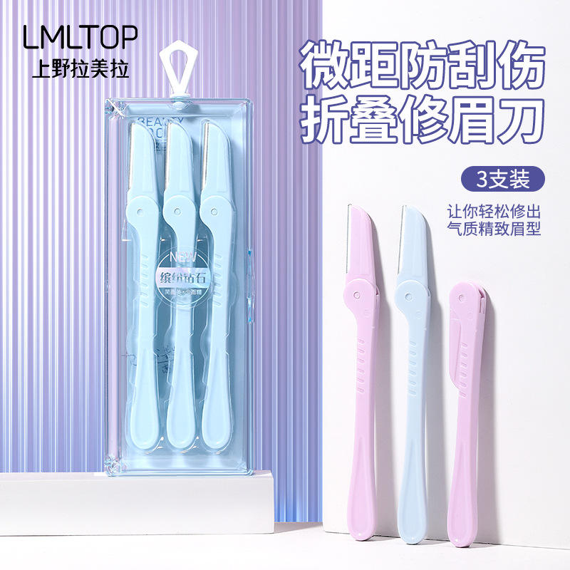 Lmltop Folding Eyebrow Razor 3-Pack Compact With Protective Net Boxed Version Sy341