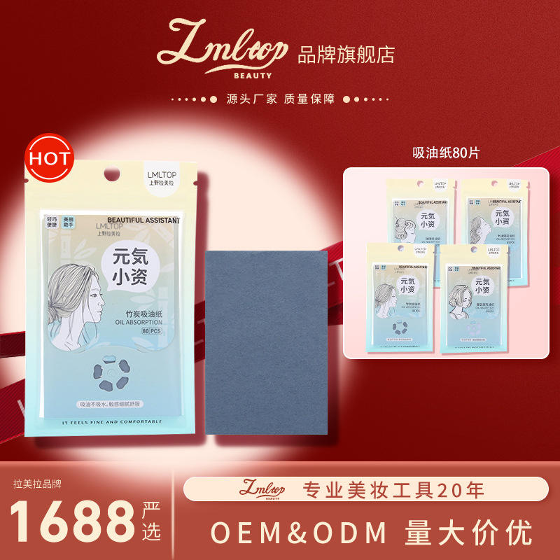 แอลเอ็มแอลท็อปแผ่นดูดซับน้ำมัน 80 แผ่น กล่องกระดาษแข็งแบบพกพา กระดาษแต่งหน้ากลิ่นหอมสดชื่น ท็อป 096