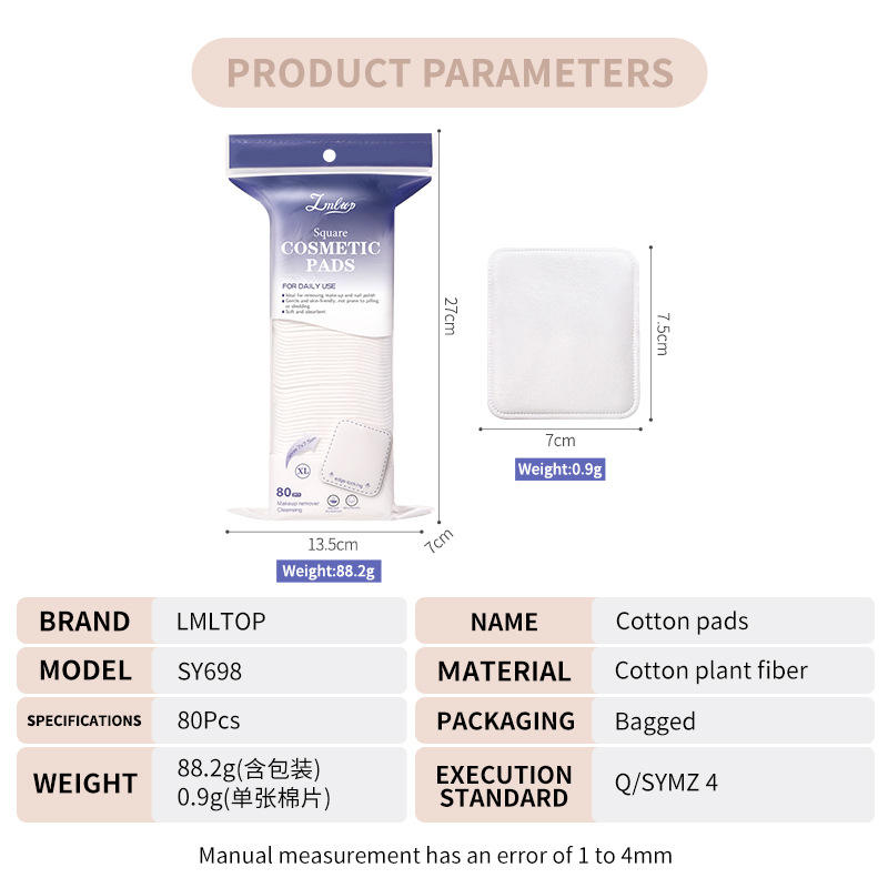 แผ่นเช็ดเครื่องสำอาง Lmltop Square Cosmetic Pads 80 ชิ้น ขนาด XL สำหรับเช็ดทำความสะอาดเครื่องสำอาง ใช้ได้ทุกวัน
