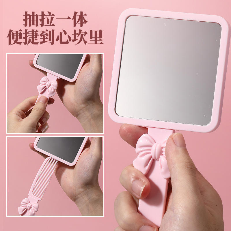 กระจกมือถือทรงสี่เหลี่ยมพร้อมหวี ชุดคอมโบพกพาสะดวกสำหรับแต่งหน้า กระจกแต่งหน้าสำหรับผู้หญิงและเด็กผู้หญิง ดีไซน์น่ารัก