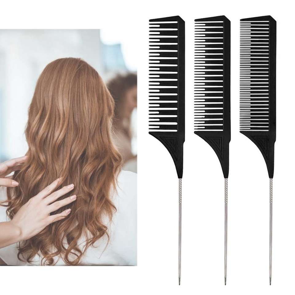 หวีปลายแหลมเหล็กฟันใหญ่เล็กเล็ก หวีแฟชั่น หวีปลายแหลมสำหรับไฮไลท์ผม สำหรับช่างทำผม