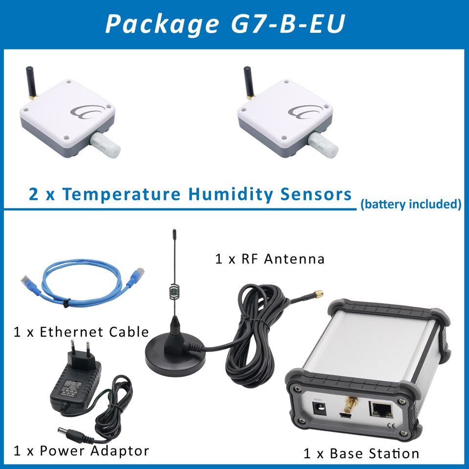 1 x สถานีฐาน, 2 x เซ็นเซอร์วัดอุณหภูมิและความชื้นแบบไร้สาย