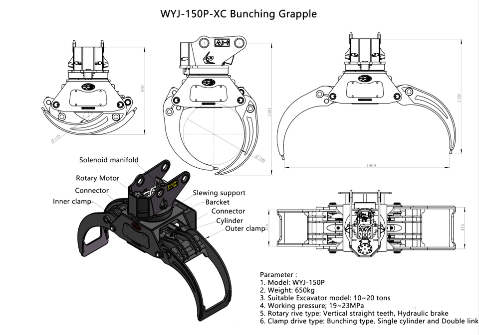 Grapple Type:single cylinder/bunching grapple/doubble link