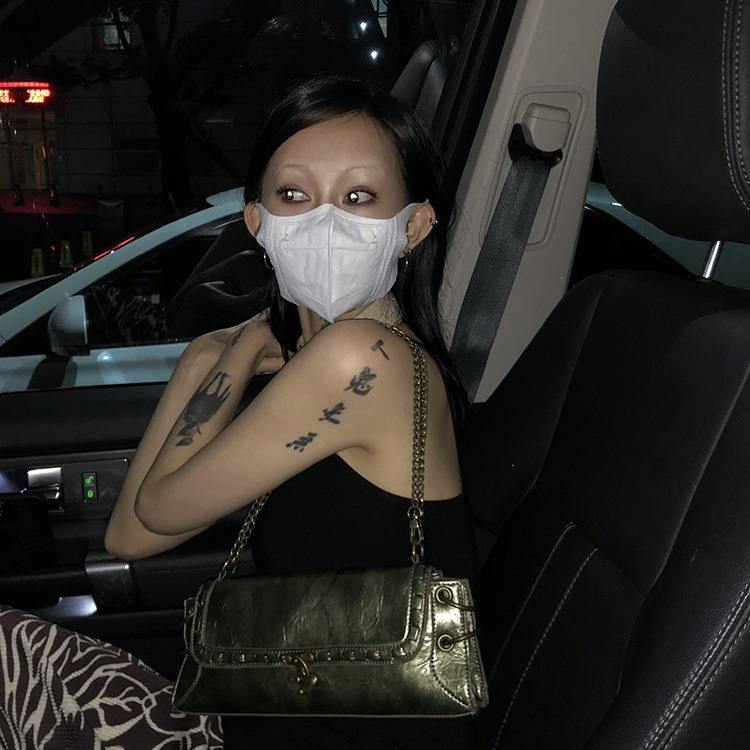 กระเป๋าสะพายไหล่สีบรอนซ์ทองล็อค