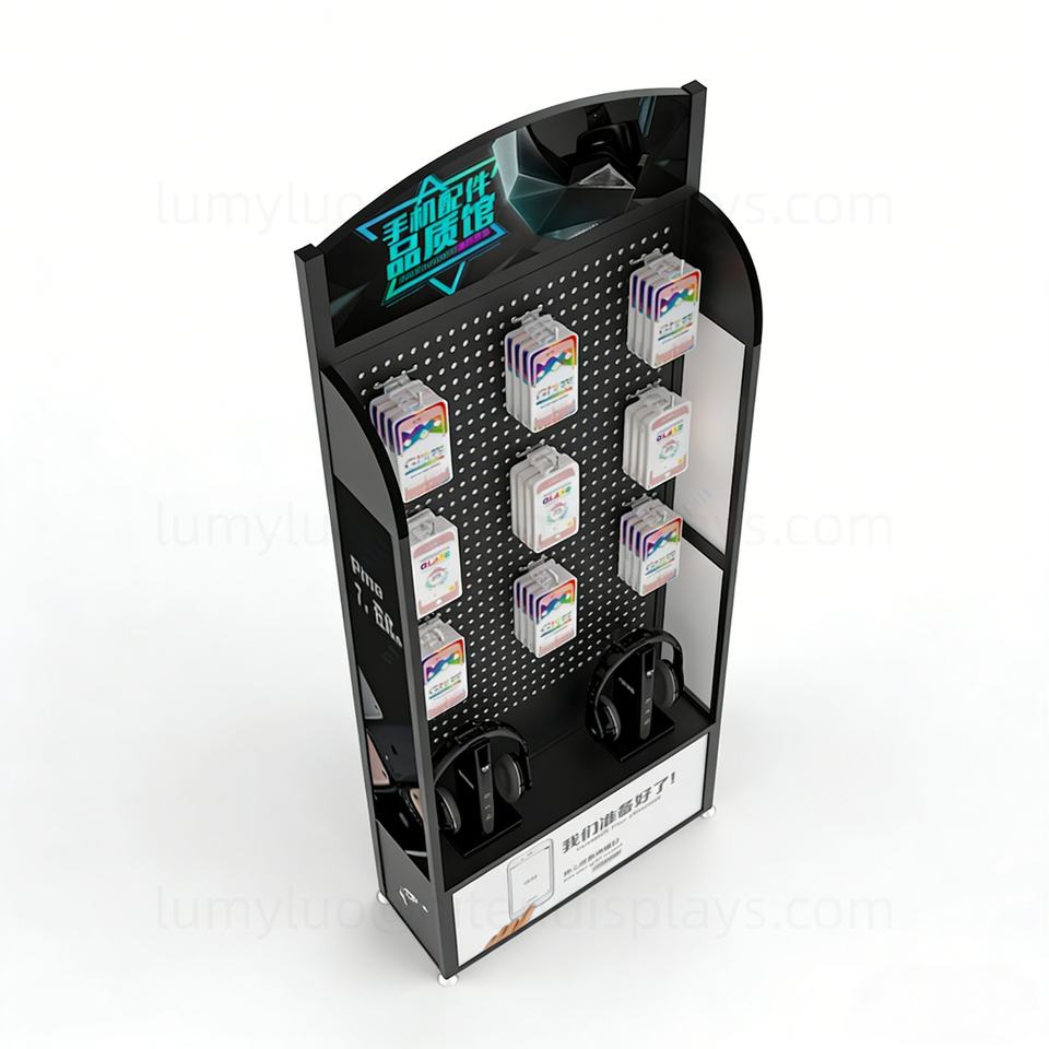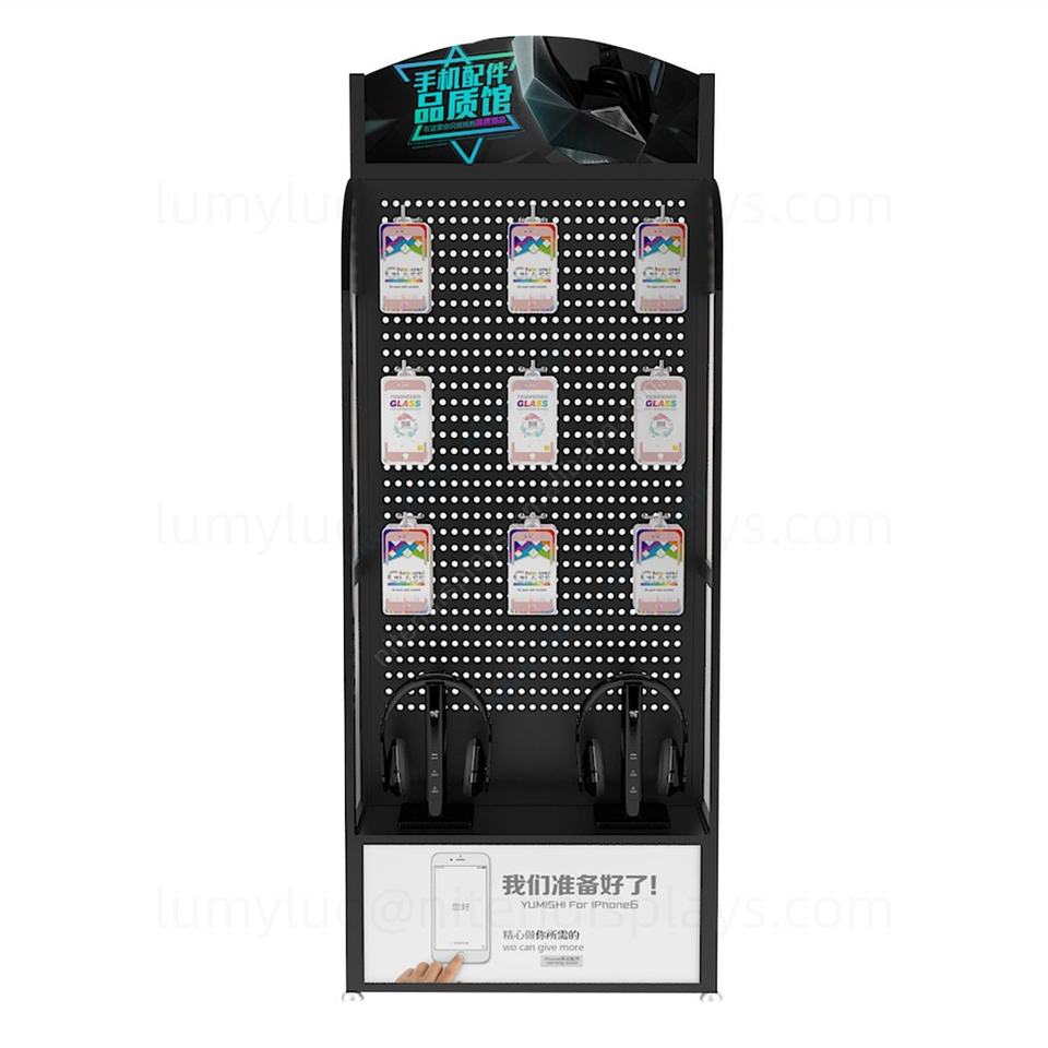 ตู้โชว์แบบมีกุญแจพร้อมตะขอ ชั้นวางโลหะแบบมีรูสำหรับแขวน ใช้สำหรับวางอุปกรณ์เสริมโทรศัพท์มือถือ เคส หูฟัง สำหรับจัดแสดง