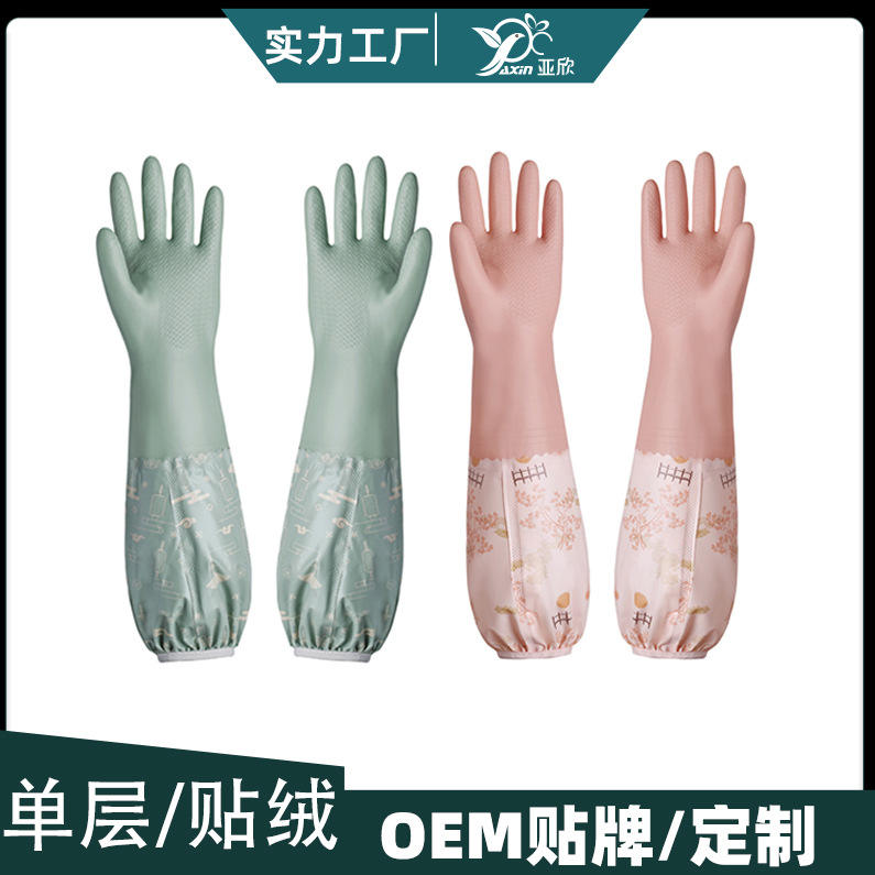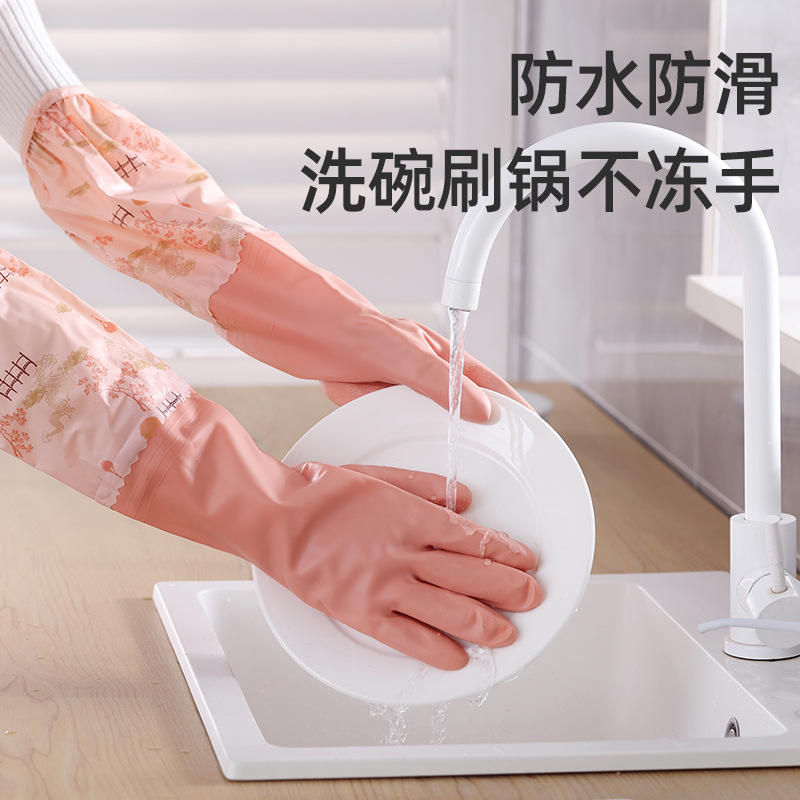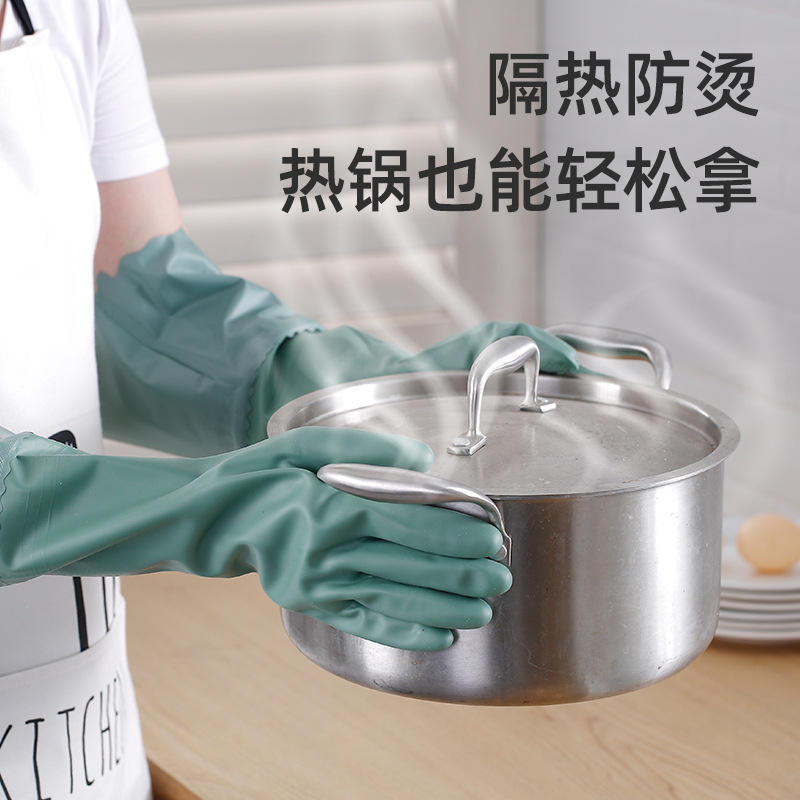 ถุงมือยางกันน้ำโลโด้แบบยาวสำหรับล้างจานในครัว ใช้ในฤดูหนาว สีพื้น ทำจาก PVC