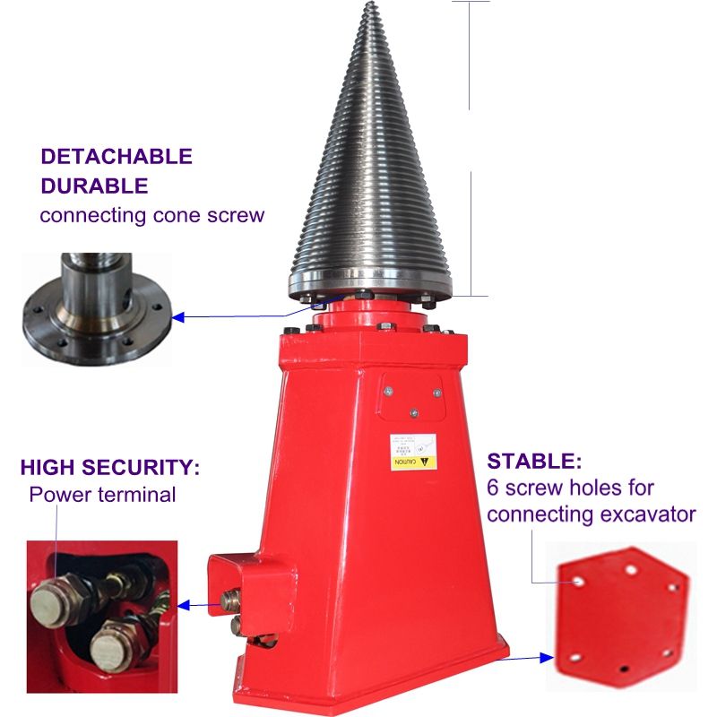 Logs spitter สำหรับ MINI Excavator divisor de cono Para madera kegelspalter Bagger เครื่องจักรป่าไม้ holzspalter fendeuse lectrique