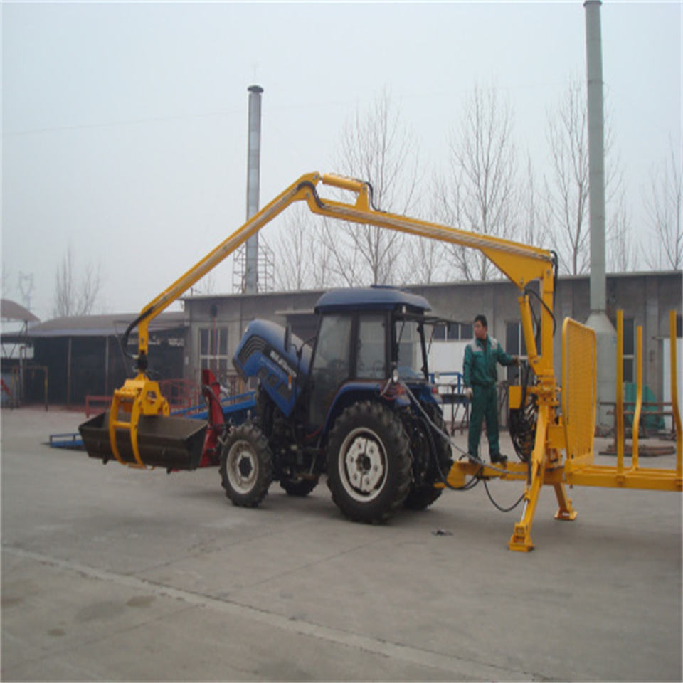 รถพ่วงบรรทุกไม้พร้อมเครนแขนยืดหยุ่นสำหรับจับไม้ พร้อมอุปกรณ์จับไม้ รถพ่วงสำหรับรถแทรกเตอร์ รับประกัน 1 ปี ยี่ห้อ OEM