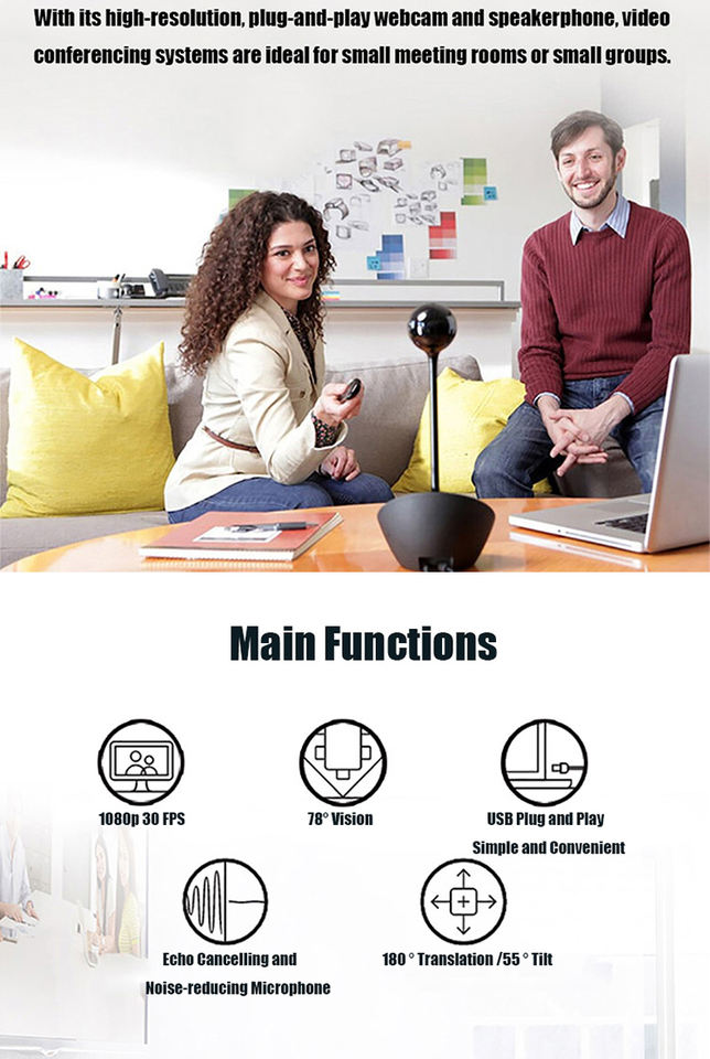 โซลูชันการประชุมทางวิดีโอแบบตั้งโต๊ะ Logitech BCC950 ความละเอียด Full HD 1080p พร้อมไมโครโฟนตัดเสียงรบกวนสำหรับการสนทนาผ่านวิดีโอ B23