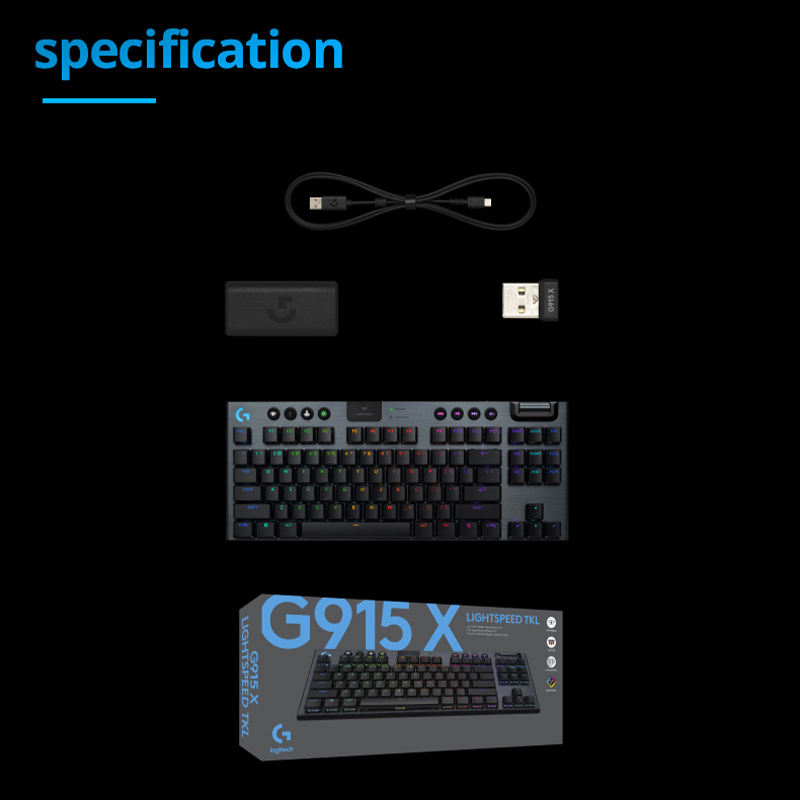 คีย์บอร์ดโลจิเทค G915 X Lightspeed TKL RGB ไร้สาย แบบกลไก 60% ขนาดเล็ก กันน้ำ สำหรับเล่นเกมบนพีซีและแล็ปท็อป 87 ปุ่ม