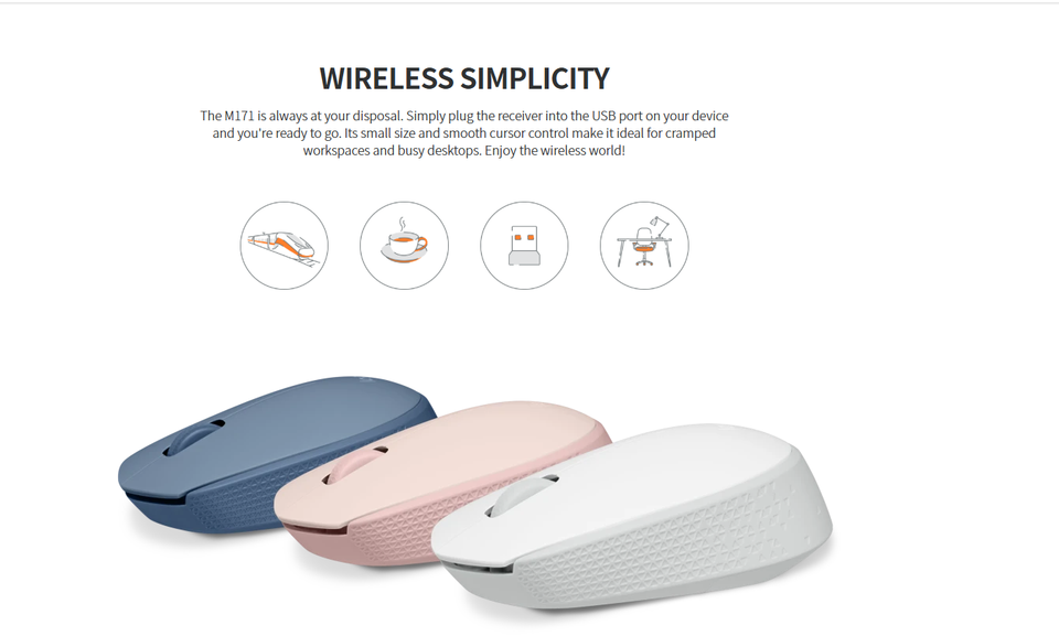 Logitechs เมาส์ไร้สายเมาส์ M171แบบสมมาตรเมาส์2.4GHz ตัวรับสัญญาณ USB ระบบนำทางด้วยแสงการยศาสตร์สำหรับแล็ปท็อป