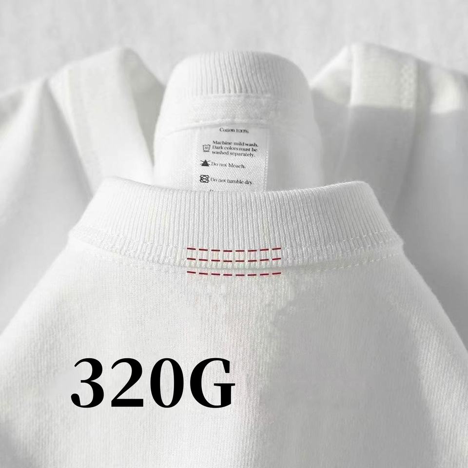 เสื้อยืดผู้ชายไซส์ใหญ่ ผ้าคอตตอนถัก 100% ปักลาย DTG คุณภาพสูง หนัก 320 กรัม แบบสั่งทำพิเศษ