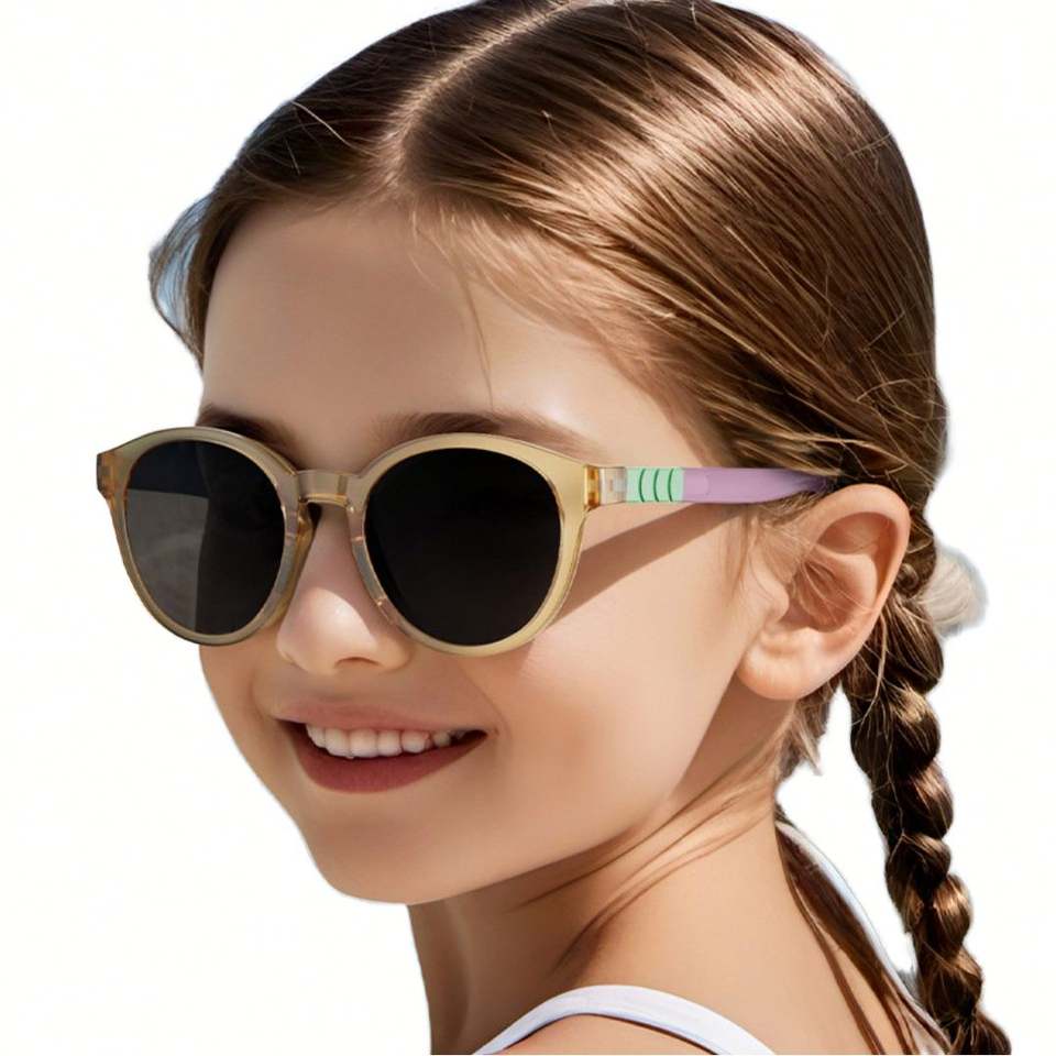 แว่นกันแดดเด็กทรงกลม รุ่นโลโก้คัสตอม 2025 แฟชั่นเด็กชายเด็กหญิง กรอบ TR90 สีสันสดใส ป้องกันรังสียูวี 400 พร้อมเลนส์โพลาไรซ์