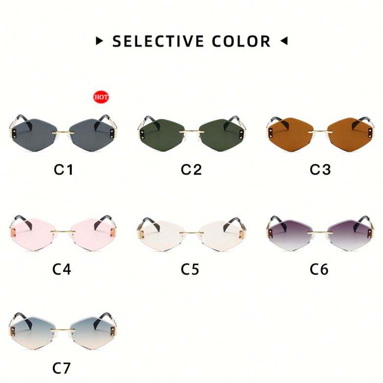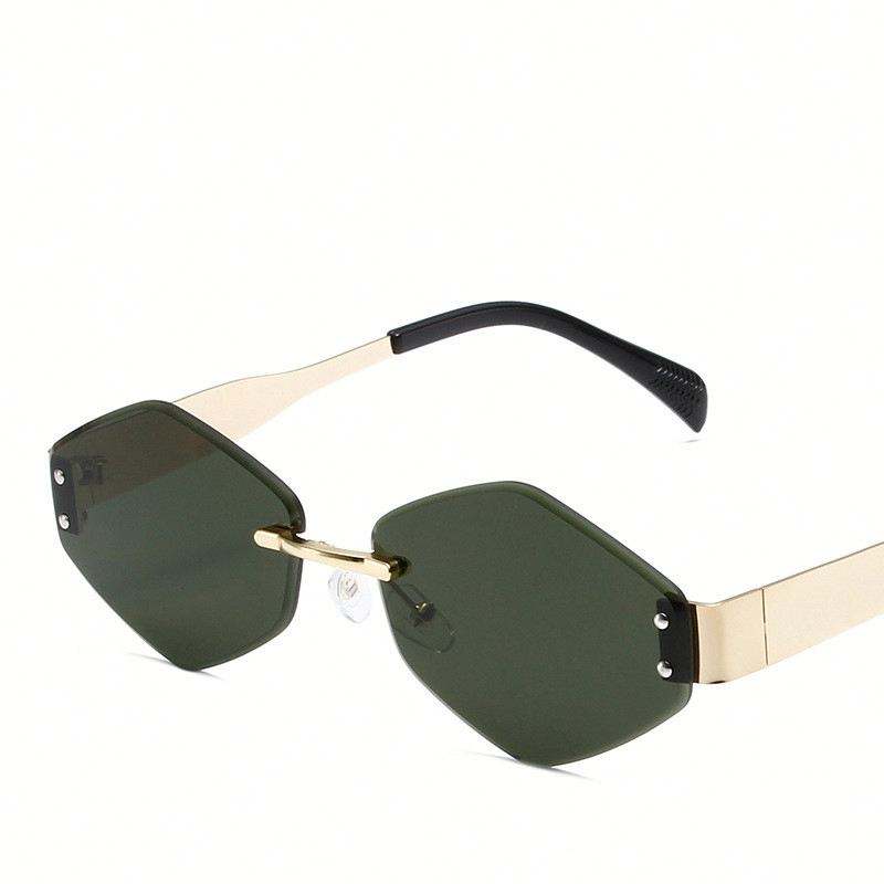 แว่นกันแดดทรงหกเหลี่ยมโลหะผสมแฟชั่นย้อนยุคปี 2025 โลโก้แบบกำหนดเอง ป้องกันรังสียูวี 400 ไร้กรอบ สำหรับผู้หญิง