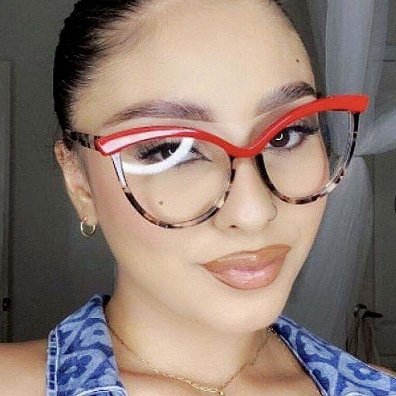 แว่นตาโลโก้แบบกำหนดเอง รุ่นวินเทจ 2025 กรอบ TR90 ป้องกันแสงสีฟ้า เลนส์ใส แว่นสายตาแบบสองสี ทรงแคทอาย สำหรับผู้หญิง