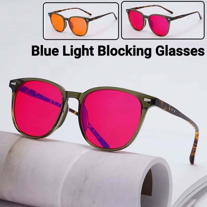 แว่นตาป้องกันแสงคอมพิวเตอร์ รุ่น Logo Custom 2026 ทรงกลม สีแดงส้ม สำหรับทุกเพศ ป้องกันรังสี ช่วยให้นอนหลับสบาย ป้องกันแสงสีฟ้า