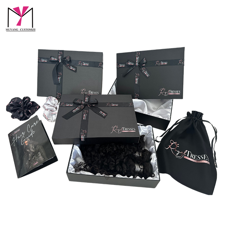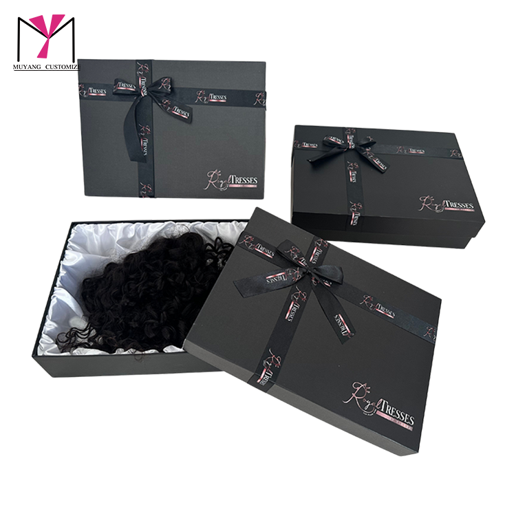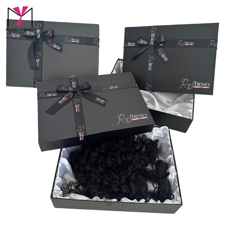 กล่องของขวัญวิกผมดีไซน์ทันสมัยพร้อมถาดกระดาษเคลือบด้าน พิมพ์ลายเฉพาะจุดด้วยเทคนิคยูวี และหูหิ้ว