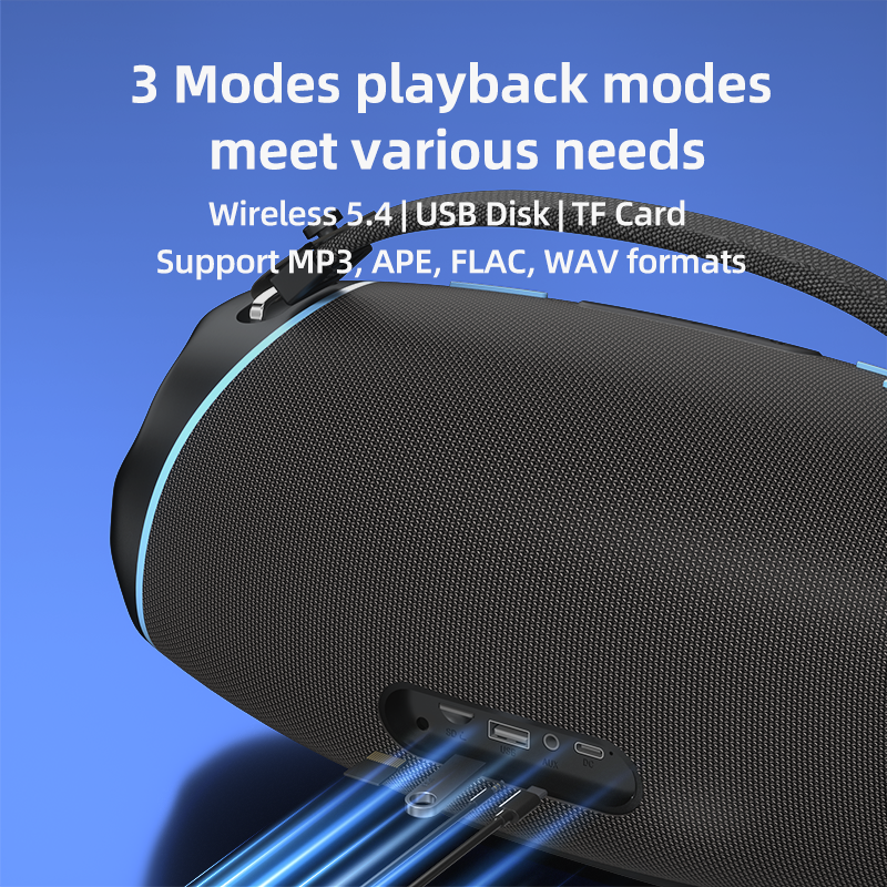 วัสดุตู้พลาสติก: วัสดุตู้พลาสติกทำให้ลำโพงมีน้ำหนักเบาและทนทาน ทำให้ง่ายต่อการพกพาและทนต่อการสึกหรอ