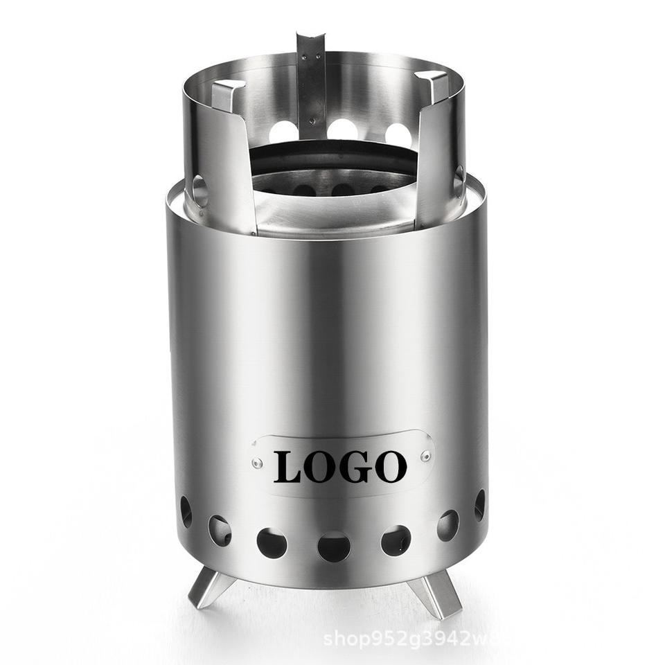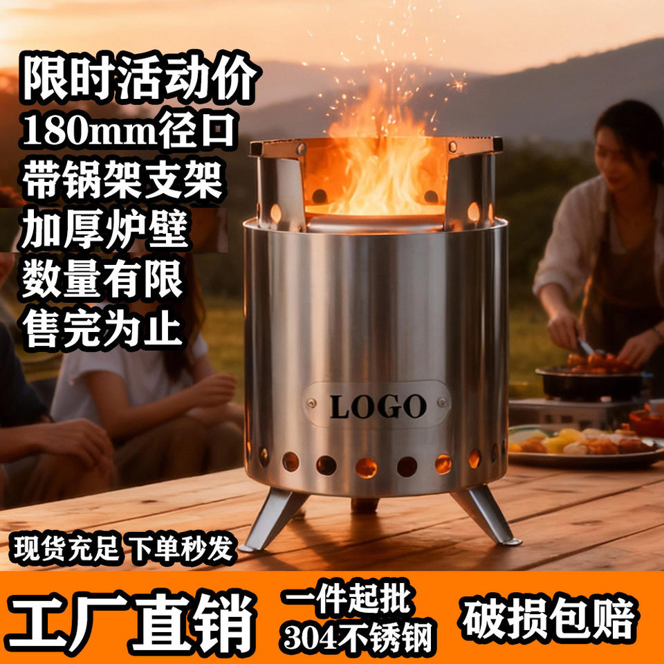เตาแคมป์ไฟพกพาโลโก้ 18 ซม. สแตนเลส พร้อมขาตั้งและชั้นวางหม้อ สำหรับใช้งานกลางแจ้ง