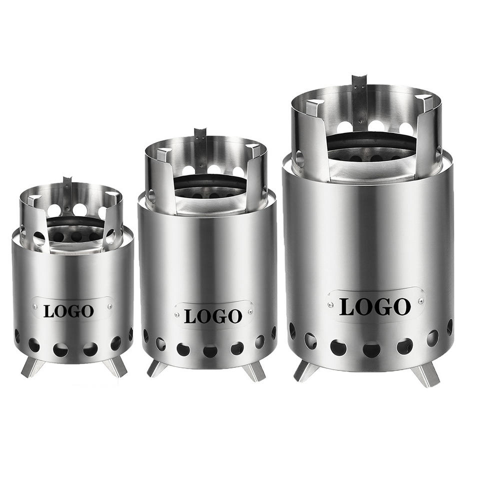 เตาแคมป์ปิ้งสแตนเลสโลโก้ 108 130 180 มม. แบบพกพาสำหรับใช้กลางแจ้ง ใช้ฟืน พร้อมขาตั้งและชั้นวางหม้อ