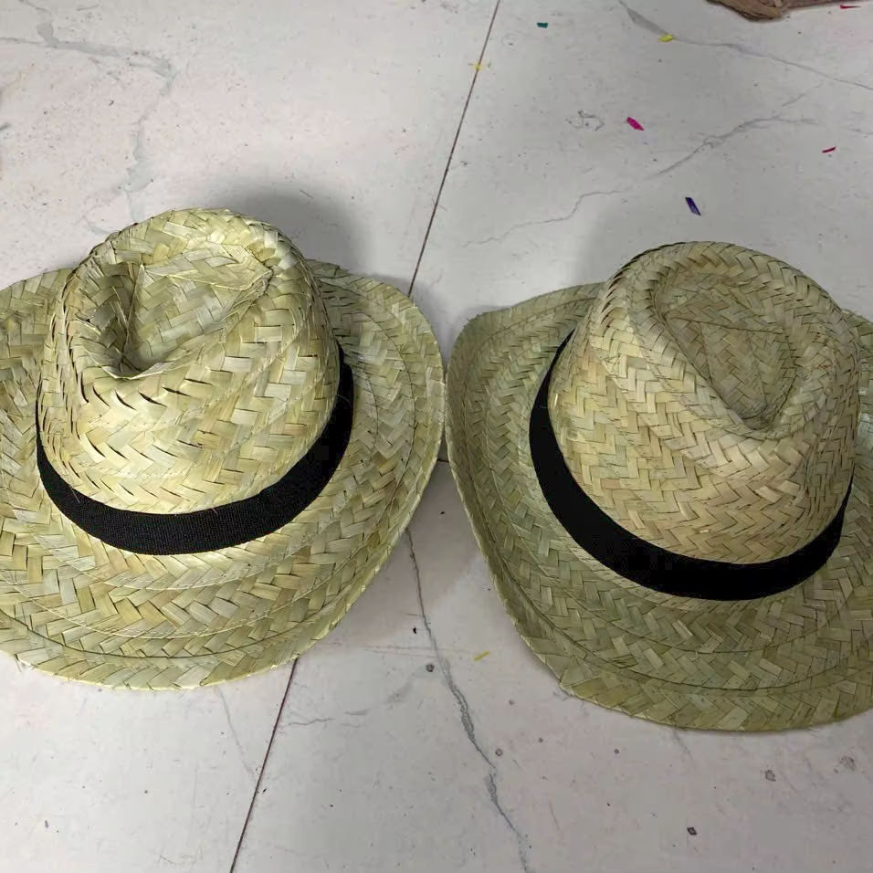 Logo Ribbon Straw Fedora Hat /Customized Ribbon Straw Hat with Embroidered logo Beach Restaurant Party Holiday Cinco De Mayo