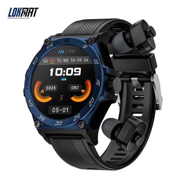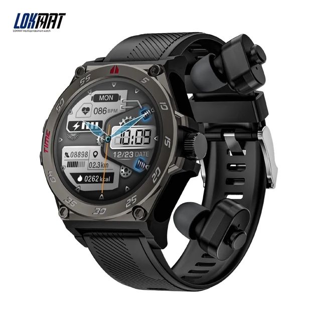 Lokmat Time GT 2 in 1 สมาร์ทวอท์ชพร้อมหูฟัง TWS BT โทรฟิตเนสติดตามเครื่องวัดอัตราการเต้นของหัวใจนาฬิกาอัจฉริยะสําหรับโทรศัพท์สมาร์ท