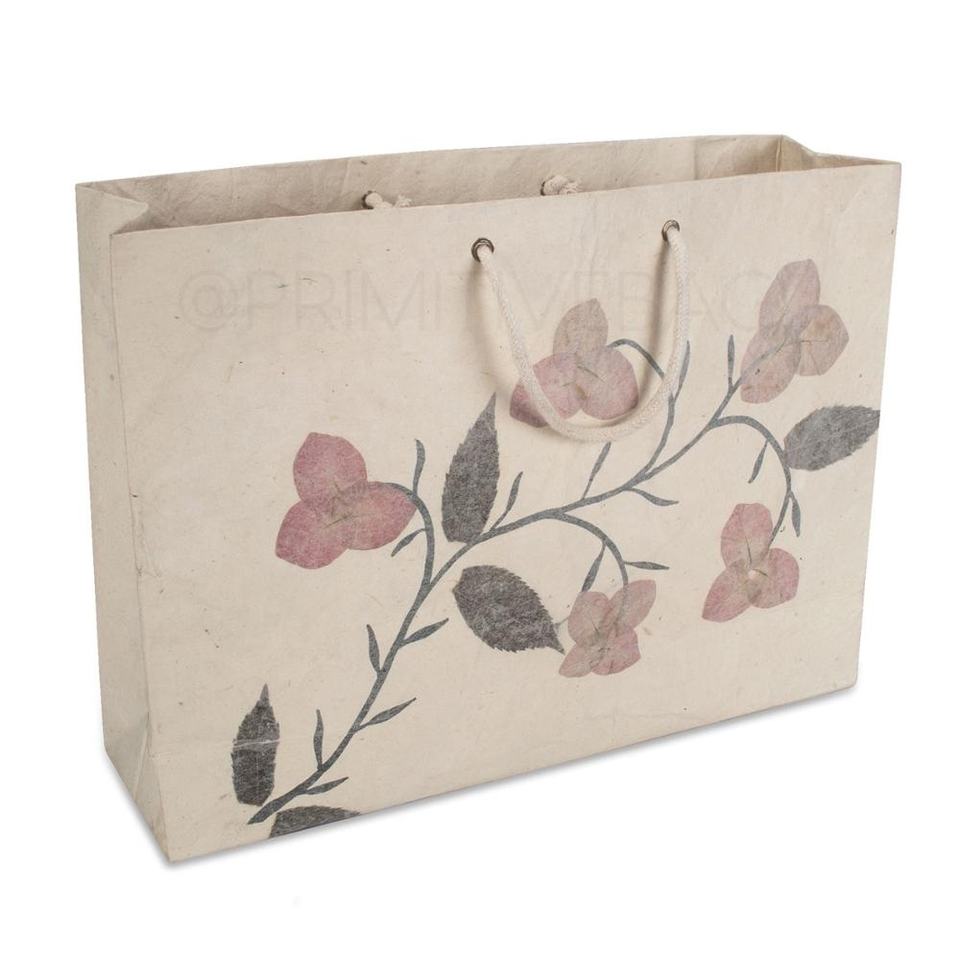 Lokta ถุงกระดาษถุงช้อปปิ้งการออกแบบดอกไม้ที่มีด้ามจับ-กระดาษดั้งเดิมสำหรับร้านขายของชำ,สินค้า,พรรค-รีไซเคิลได้100%