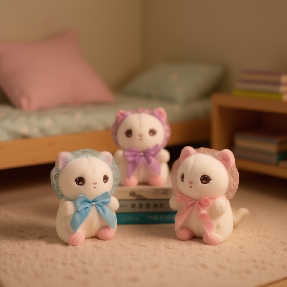 ตุ๊กตาแมวโลลิต้า รุ่น Ruobing ขนาด 11-30 ซม. สำหรับเด็กอายุ 2-4 ปี ของเล่นตุ๊กตาสัตว์แบบยูนิเซ็กซ์ พร้อมโบว์และหมวกผ้าลูกไม้