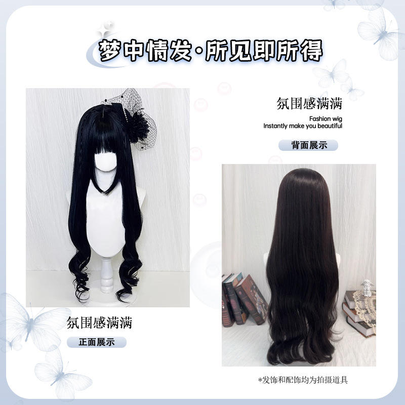 วิกผมยาวลอนสไตล์โลลิต้า 85 ซม. สีน้ำตาลเท่ห์ ทรงหางม้าคู่ ปิดผมเต็มศีรษะ ทำจากเส้นใยทนความร้อนสูง ปัดข้าง มีหน้าม้า วิกผมผู้หญิง