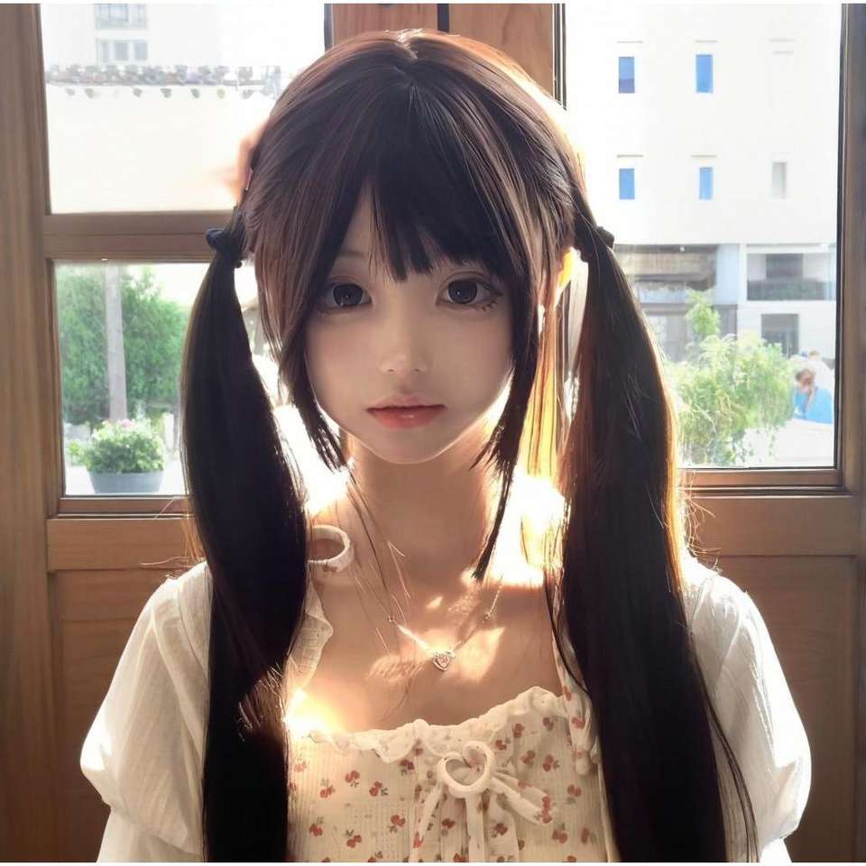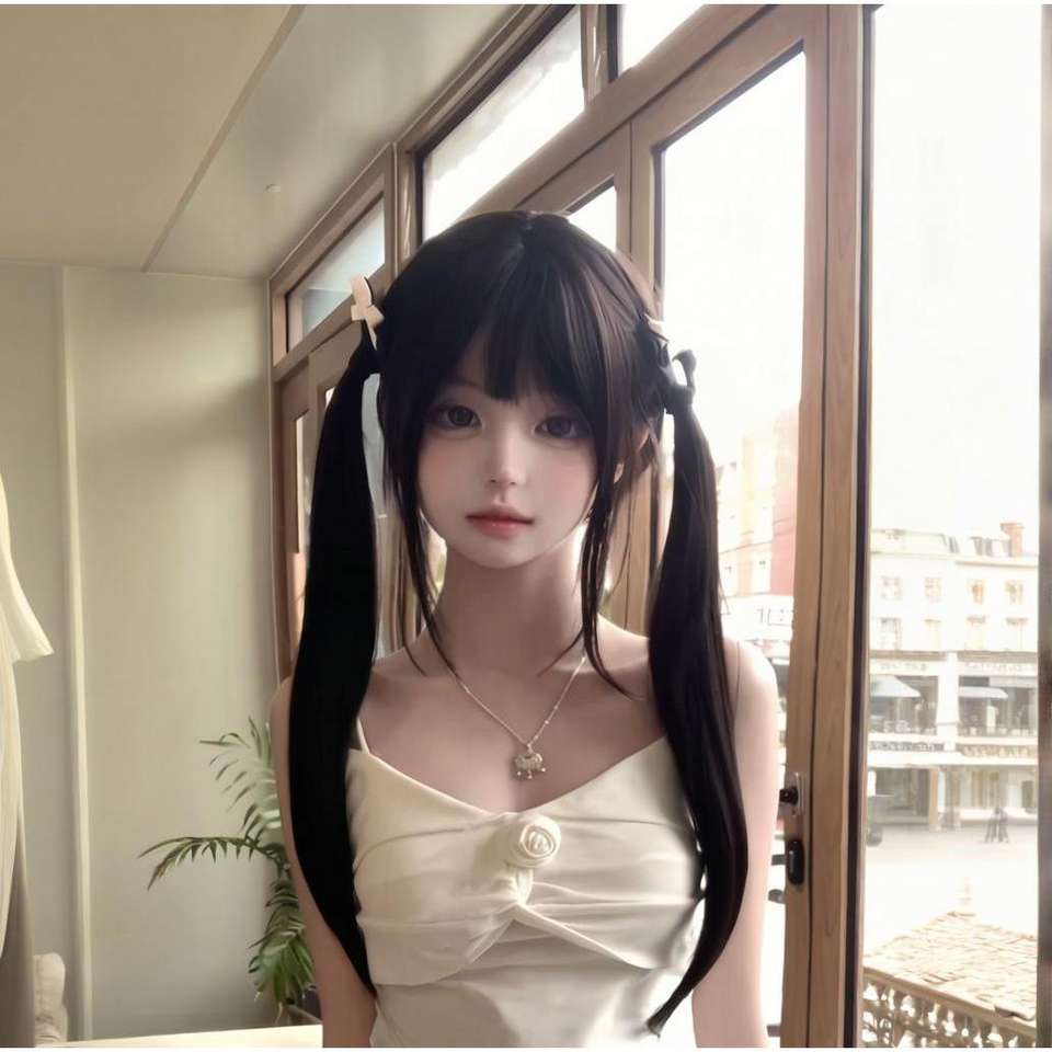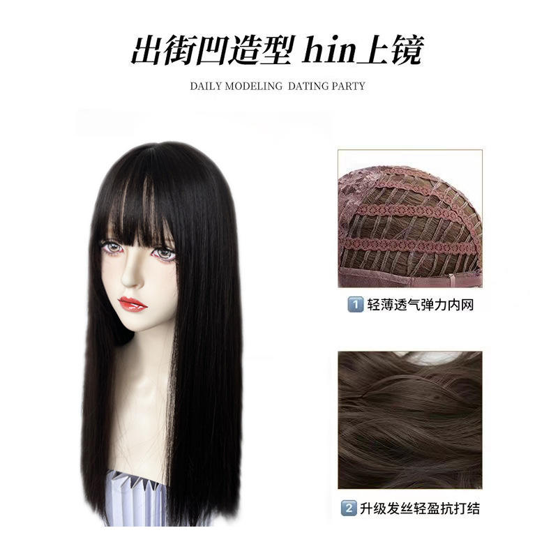 วิกผมยาวตรงสไตล์โลลิต้า พร้อมผมหน้าม้าปัดข้าง เส้นผมธรรมชาติ ใยคาเนคาลอน ฐานลูกไม้โปร่งใส สำหรับผู้หญิง