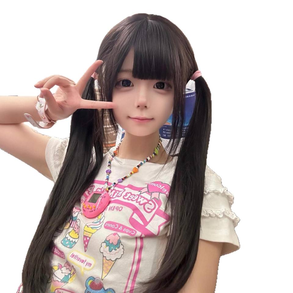 Lolita Long Straight Wig With Side Swept Bangs Kanekalon Fiber Natural Hairline Full Head Wig For JK Style Women 65cm Blackish