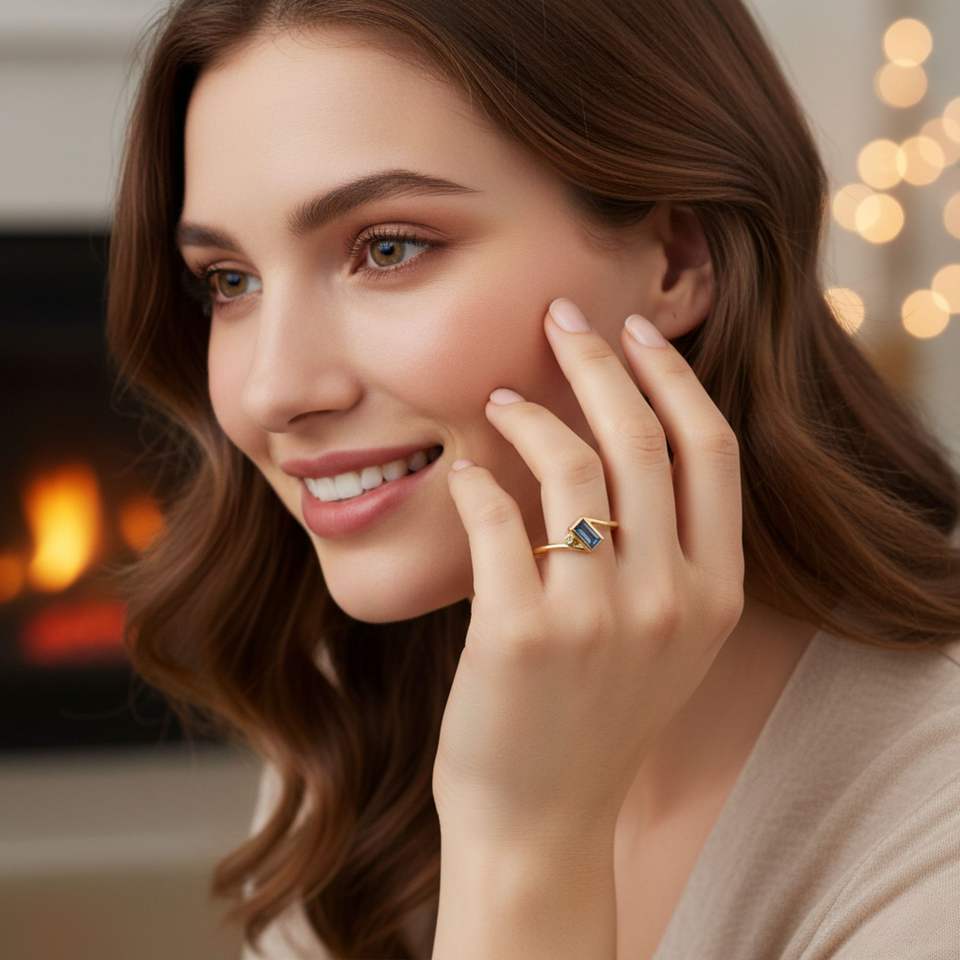 Product Name:London Blue Topaz Rectangle Shape Sterling Silver Gold Plated Ring