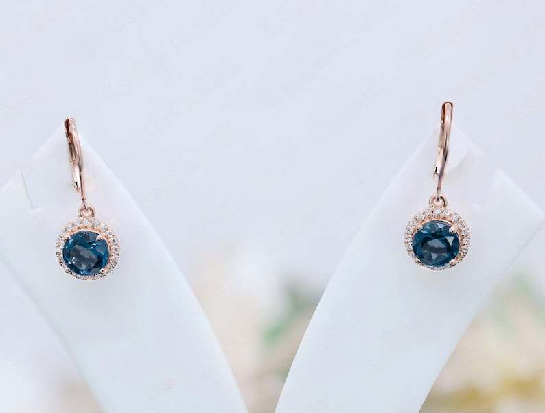 ต่างหูทรงหยดน้ำลอนดอนบลูโทแพซประดับโมอิสซาไนต์ทรงรัศมี เงินแท้ 925 ชุบทองคำขาว 14K สำหรับผู้หญิง เหมาะสำหรับงานปาร์ตี้