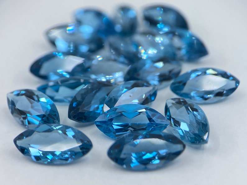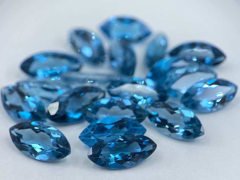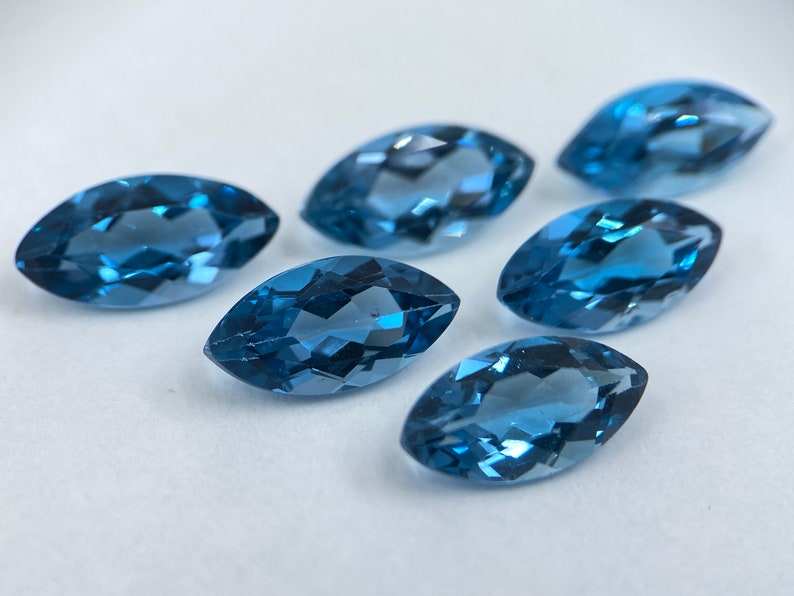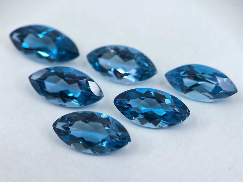 พลอยบลูโทแพซลอนดอนทรงมาร์คีส์เจียระไน ขนาด 4x2 มม. 5x2.5 มม. 6x3 มม. สำหรับทำเครื่องประดับ