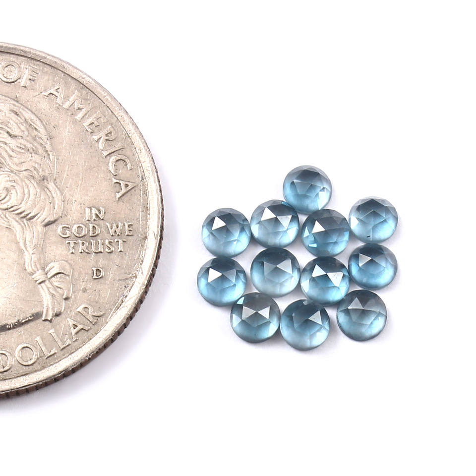 พลอยโทแพซสีน้ำเงินลอนดอนทรงกลมเจียระไนแบบโรสคัท ขนาด 5x5 มม. พลอยหลวม จำหน่ายราคาส่งจากโรงงาน คุณภาพเยี่ยม